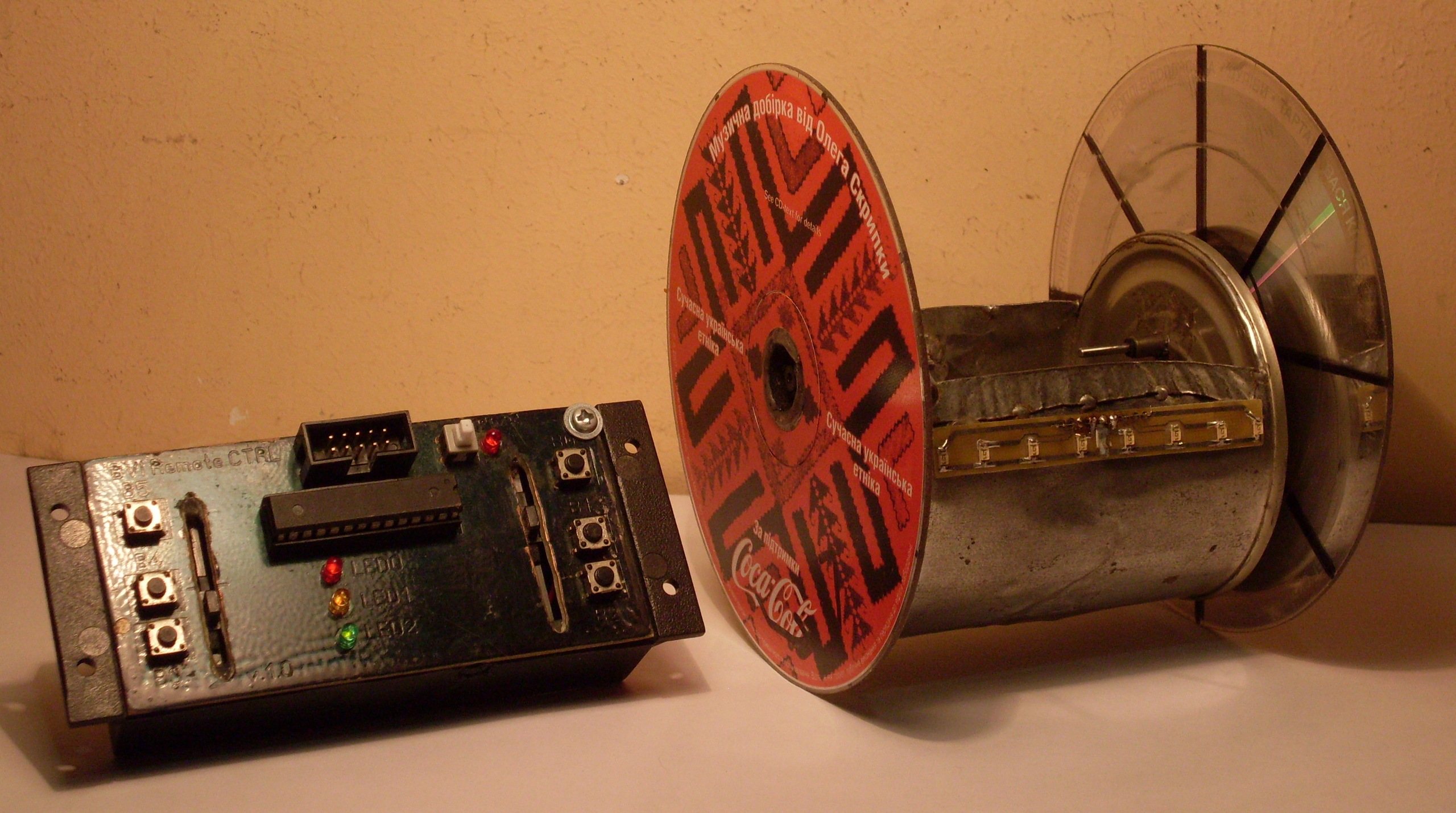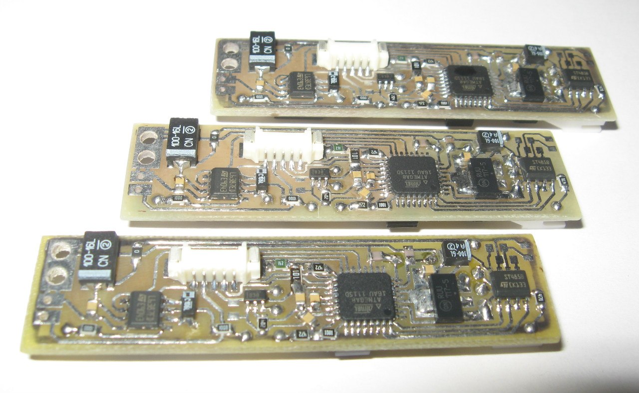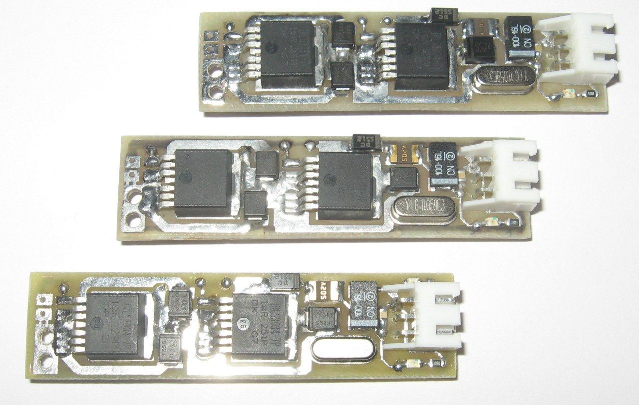 Управление двигателем реализовано посредством ИК связи (RC-5). Под управлением подразумевается установка скорости (0-15). Сердечком драйвера выступает Attiny45.