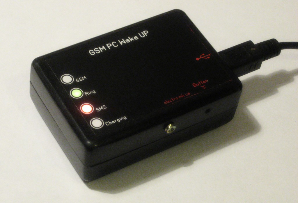 Устройство эмулирует клавиатуру. При поступлении звонка с «белого» номера, а также при получении SMS с ранее заданным паролем GSM PC Wake UP посылает команду подъема компьютера. Параметры задаются в специальном SMS сообщении. Предусмотрена возможность обновления прошивки через USB.