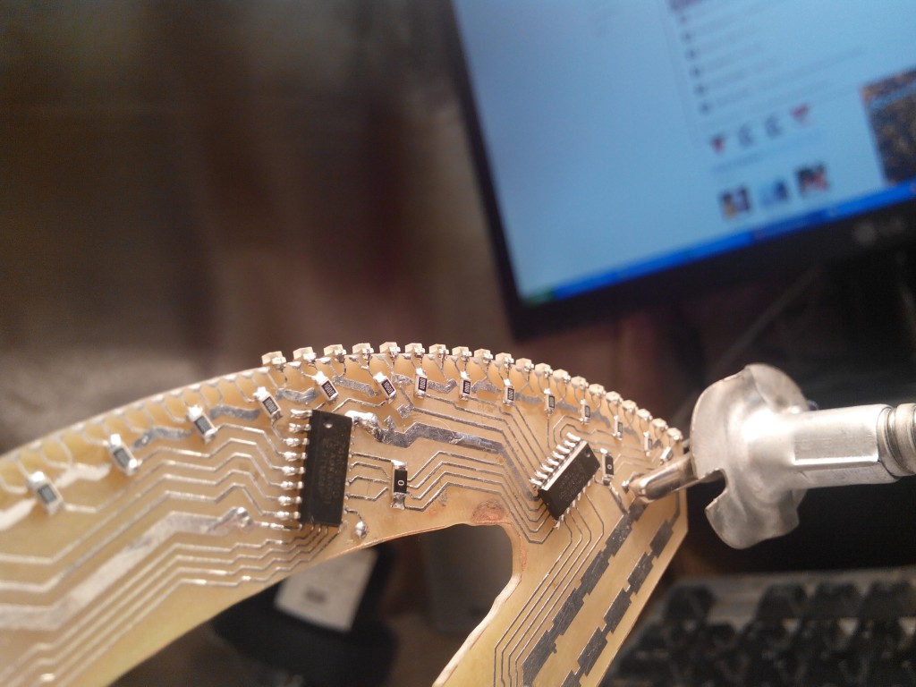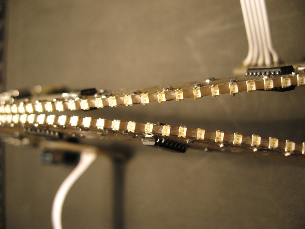 Система отображения информации состоит из двух геометрически одинаковых полудуг, в торце которых установлены SMD светодиоды.